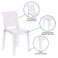 4 Pack. Ghost Chair with Square Back