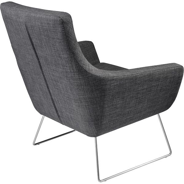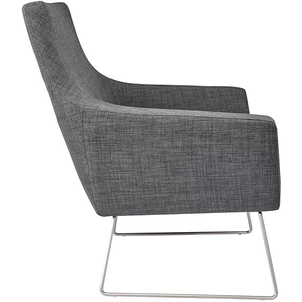 The smooth clean lines of this chair are both modern and industrial. Rich texture in a woven gray fabric provides an interesting contrast to the sleek, smooth steel base. With wide arms and a 22.5″W x 21″D seat, you’ll have plenty of room to lounge and relax.
