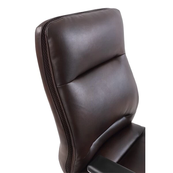 - Upholstered in soft brown bonded leather