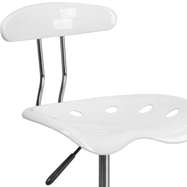 The high-shine white seat and chrome-finished base of the Flash Furniture Vibrant drafting stool create an instant style upgrade for your office. The contoured tractor seat is perforated to allow easy airflow, so you’ll stay cool while you work. Take advantage of the built-in footrest to relax your legs during long hours at your desk.