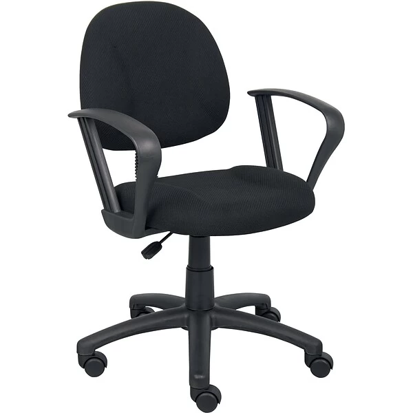 This Fabric Deluxe Posture Chair comes with a thick padded seat and back with built in lumbar support. It has an adjustable back depth that can be easily customized for your personal needs. The pneumatic adjustable gas lift allows for easy seat height adjustment, to help you find the personalized sitting style that suits you and your work environment. The five star nylon base allows for smooth movement and stability. The hooded double wheel casters make it easy to move and shift directions. The Loop Arms make for comfortable and natural arm rests.