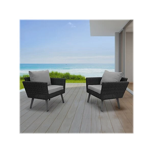 - Features a solid powder-coated steel frame fully wrapped in beautiful all-weather dark gray wicker PE rattan; thick and soft water-resistant cushion and pillow come in light gray