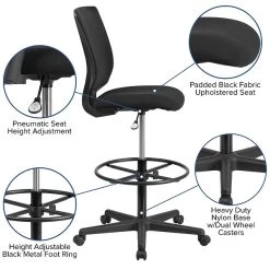 Ergonomic Mid-Back Mesh Drafting Chair with Fabric Seat and Adjustable Foot Ring
