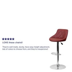 - Color: Burgundy; Material: Chrome, Foam, Metal, Plastic, Plywood, Vinyl