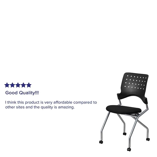 Flash Furniture Armless nesting chair features silver powder coated frame with heavy-duty casters for enhanced durability. Nesting chair has space saver design ideal for nesting training/conference room, sold as 2 per pack.