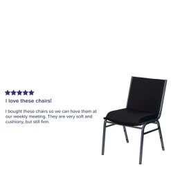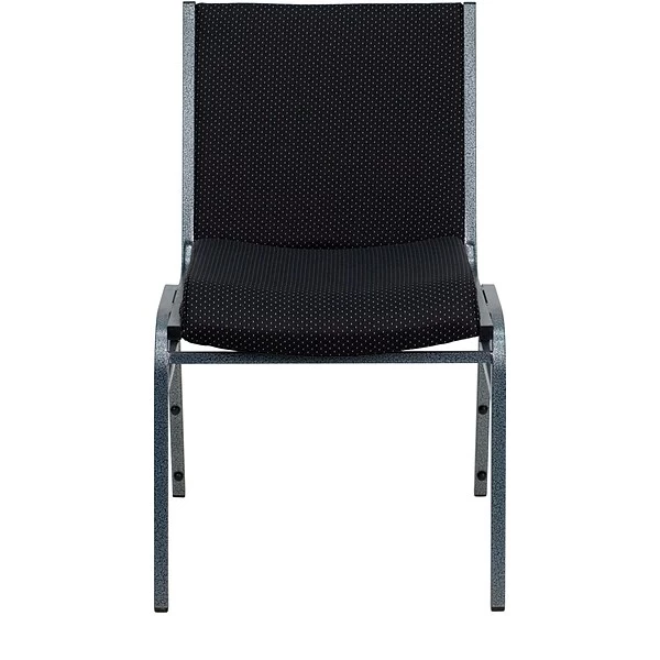 Flash Furniture HERCULES™ Heavy duty multi-purpose stack chair features 18 gauge high carbon steel for optimum stability. Chair is made of black patterned fabric upholstery with 3” thickly padded seat offering comfort.