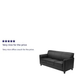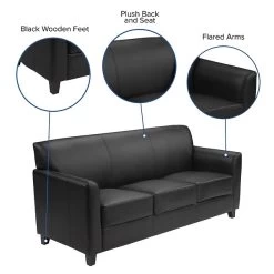 Not only does this sofa feature comfortable cushions, flared arms and raised feet, the hardwood construction frame will give you many years of use. The raised block feet look great and make it easier to clean the flooring beneath. This reception sofa is perfect for the office as well as waiting room seating. The contemporary design of this furniture adapts in several different settings. This upholstered sofa will not only fit in a professional environment, but will add a modern look to your home.