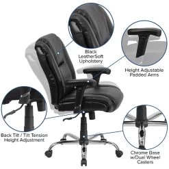 - Black LeatherSoft Upholstery, Height Adjustable Padded Arms