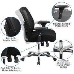 This chair was designed to meet your needs around the clock. Also known as multi-shift task chairs, a 24-hour office chair is designed for extended use or multiple-shift environments. The big and tall design also aids in accommodating larger and taller body types. This chair has been tested to hold a capacity of up to 500 lbs., offering a broader seat and back width. The chair offers support to the mid-to-upper back region. This chair features built-in lumbar support and a molded foam seat that dissipates pressure points for greater comfort. The waterfall front seat edge removes pressure from the lower legs. Chair easily swivels 360 degrees to get the maximum use of your workspace. The pneumatic adjustment on this chair offers a very smooth adjustment range to achieve your desired height. The heavy duty chrome base is constructed to keep up with the demands of an intensive use chair.