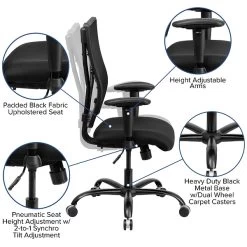 - 2-to-1 Synchro Tilt Adjustment tilts the back and seat in unison for a comfortable seating position