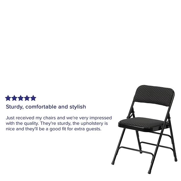 - Padded folding chair provides comfort during extended meetings and social gatherings
