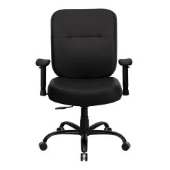 Big & Tall office chairs are designed to accommodate larger and taller body types. This chair has been tested to hold a capacity of up to 400 lbs., offering a broader seat and back width. The adjustable height back extends to the upper back for greater lumbar support. The locking back angle adjustment lever changes the angle of your torso to reduce disc pressure. Chair easily swivels 360 degrees to get the maximum use of your workspace without strain. The pneumatic adjustment lever will allow you to easily adjust the seat to your desired height. The adjustable armrests take the pressure off the shoulders and the neck, which minimizes the risk of pain. The heavy duty steel base is constructed to withstand daily use.