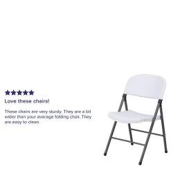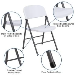 Feel free to host the holidays this year or plan a perfect event or gathering with this Flash Furniture HERCULES Series granite white plastic folding chair with charcoal frame. A practical choice for party rental companies, event venues, or for regular use in your home, this folding chair with steel frames is built to last. A molded seat provides comfort to guests while the heavy-duty frame supports up to 330 lbs. The textured seat ensures safe and comfortable seating. After use, place the chairs from the two-pack on top of each other or in a row. You’ll always have extra seating on hand for guests for a game night, party, and Thanksgiving or Christmas dinner. The plastic chair offers a versatile seating solution while being easy to maintain and is designed for portability.