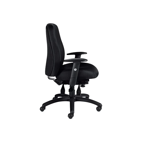 Outfit your reception desk, cubicle or private office with this Offices To Go multifunction chair. The thick, plushly padded seat and seat back deliver all-day comfort, while the patterned black fabric upholstery offers a modern appearance. Infinite seat tilt lock with tilt tension adjustment lets you recline back in the seat for a more relaxing seating experience. Featuring back height and angle adjustment options, this office chair provides a personalized setup. Use the pneumatic seat height adjustment lever to tailor this chair to perfectly match your desk. This Offices To Go multifunction chair comes with a scuff-resistant molded five-star base and twin-wheel carpet casters for effortless mobility.