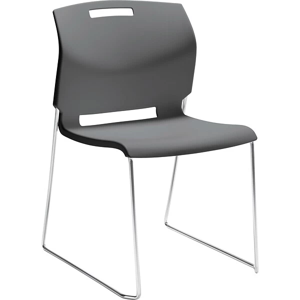 - The one piece seat-back polypropylene shell offers a back cut-out for easy cleaning and a hand-hold for ease of transportation
