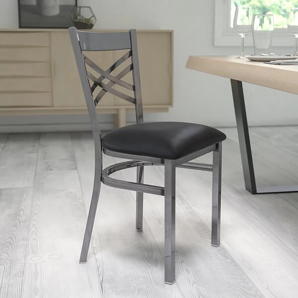 HERCULES Series Clear Coated ”X” Back Metal Restaurant Chair