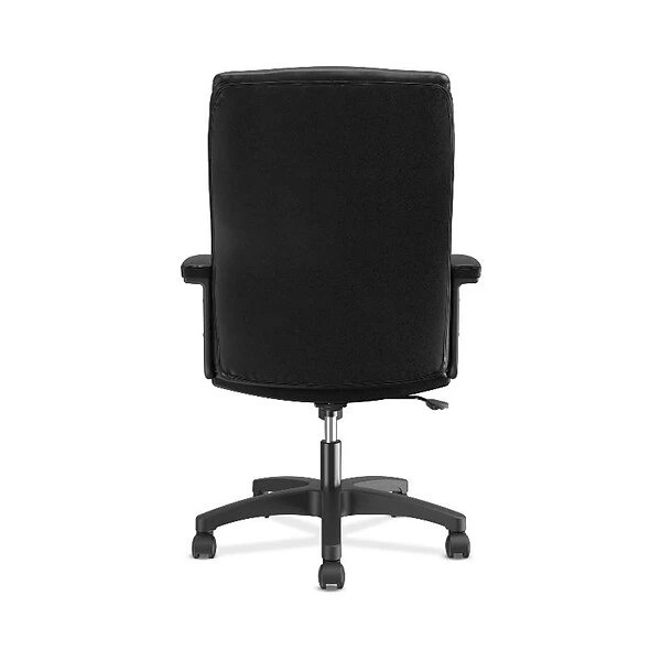 SofThread leather upholstery and padded loop arms give this chair an upscale feel at a compelling price. Seat and back SofThread leather color is Black.