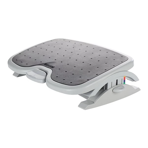 Make your workday more productive through improved comfort, when you use this footrest. A convenient foot pedal controls the footrest through simple preset options, adjusting both height and angle for an optimized foot position. This Kensington footrest features a shock-absorbing, non-skid surface for added protection and stability.