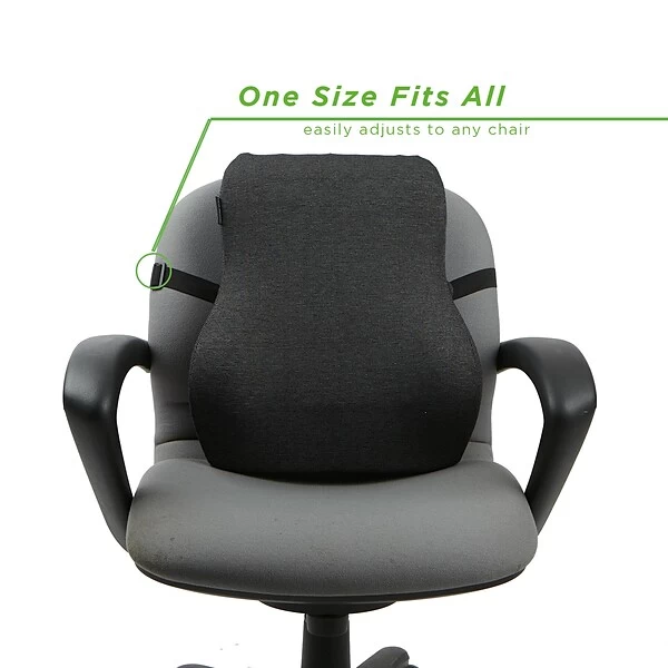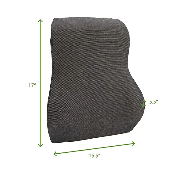 Avoid Back Pain TodayProper posture is essential in relieving pain associated with many lumbar spine issues. Using vertical backrests as a posture correction tool allows users to maintain proper spinal alignment without persistently remembering to correct posture while seated. In addition, back posture correctors reduce lumbar pain, so time and energy on the task at hand is front and center, not the pain from poor spinal alignment.Being seated for prolonged periods with or without back pain is often stressful on the body for almost anyone, especially when one is not sitting in an ergonomic position. Putting the body in an ergonomic position not only aids in spinal alignment, but proper positioning also helps relieve pressure points on knees, ankles, arms, and wrists.Not all lumbar support trainers are comfortable, so many opt for a vertical cushioning backrest constructed from memory foam. Vertical backrests utilizing this body-conforming foam offer personal comfort unique to the user’s body. In addition, soft, breathable fabric coverings of this chair accessory improve overall comfort by reducing heat built up by the body while seated.Be in command anywhere using this vertical backrest with adjustable straps. This cushioned backrest keeps the support structure in place, and the straps are easy to adjust and remove. With no assembly necessary, this backrest is also a great gift due to its ability to conform to various chair shapes and sizes. Use this back trainer with chairs for work, playing games, lounging, or anywhere additional back support is necessary. The compact size is measured at a comfortable 18.25 long x 16 wide x 5.75 inches tall (46.36 x 40.64 x 14.60 centimeters) and weighs in at 0.97 lbs (0.44 kgs), making it easy to take anywhere. While using bleach to clean the woven fabric surface is not advised, vacuuming or spot cleaning soil and spills with a clean cloth and warm water works well.