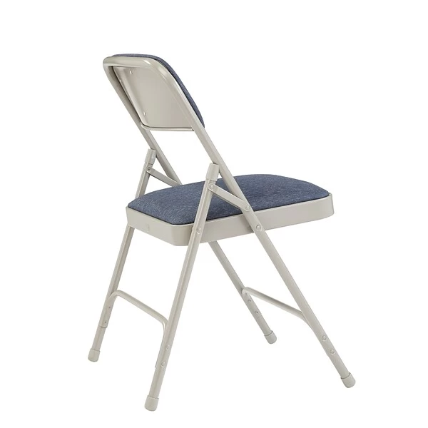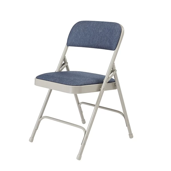 Made with comfort and elegance in mind, the 2200 Series fabric-upholstered folding chair is made with stain-resistant Scotchgarded fabric covering 1¼”-thick foam on our most popular frame. This features our unique full-size, double-contoured backrest, upholstered and firmly secured to the frame by six rivets. The institutional-grade frame is made from heavy-duty powder-coated 18-gauge round tubing with two U-shaped double-riveted cross-braces – one in front and one in the back – to securely support the double-hinged legs. Color-coordinated V-tip stability plugs provide added reinforcement at the frame’s junction and matching replaceable glides prevent floor damage. The 2200 Series meets MAS Certified Green and ANSI/BIFMA standards.