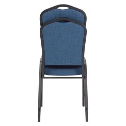 - Blue fabric covered plush foam padded upholstered seat and back supported by an 18 gauge steel frame