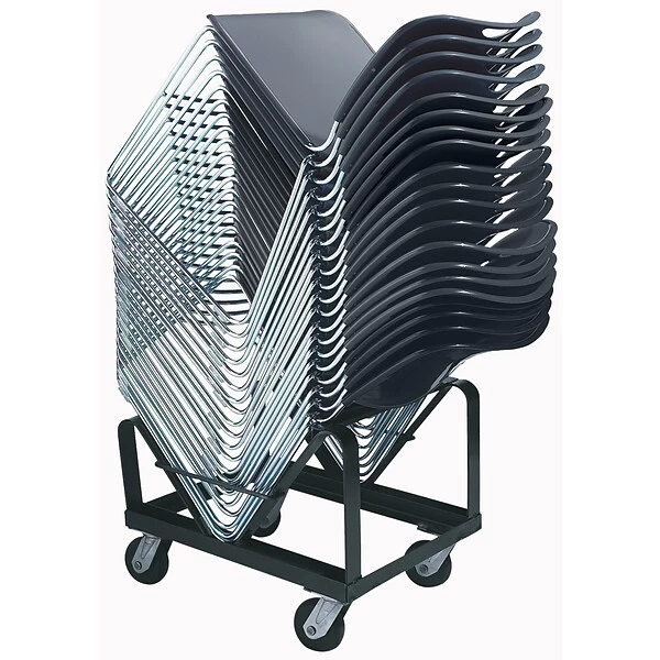 The DY-85 Chair Dolly, an 11-gauge steel unit, loads at an angle to securely and impressively hold up to 40 of the NPS 8500 Series stack chairs for easy transport and storage. Features black powder-coated paint finish that will not chip and 4″ polyurethane casters (two that swivel) for easy mobility over nearly any surface. Each caster boasts a 165 lb. weight capacity for a total of 660 lbs.