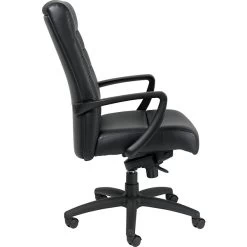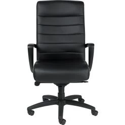 With black leather upholstery and a streamlined look, this chair is perfect for use in your executive office or at the head of the table in your boardroom. Molded cushions add a luxurious look while giving you added support through long meetings with staff and clients. Adjustable Comfort