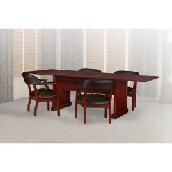 Bring an air of Ivy League distinction to any traditional home or professional office setting. A beautiful hardwood Mahogany frame, timeless brass trim accents and durable vinyl upholstery make the Ivy League Captain a must-have addition. Available in classic black or a rich burgundy finish to match any decor. The Captain chair looks great in libraries, studies and waiting rooms, too. All Regency chairs are backed by a 5-year limited manufacturer’s warranty on chair bases and frames and a 2-year limited manufacturer’s warranty on chair mechanisms and upholstery.