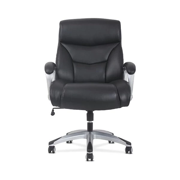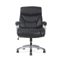 Classic black leather and a Silver frame make the Sadie 3-Forty-One big and tall chair perfect for executive spaces. Customize your comfort with an adjustable tilt lock and seat height. Fixed padded arms provide valuable upper body support, and 360-degree swivel enable total freedom of movement.