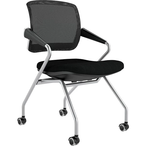- Mobile nesting chair with mesh mid-back and fabric-upholstered seat.