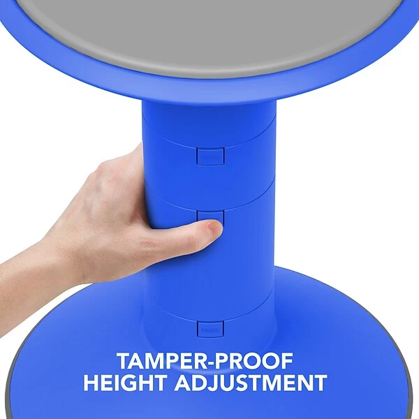 Featuring an adjustable seat height of 12-18″ in 2″ increments, these wiggle stools grow with your students and eliminate guesswork when ordering. An extra-thick padded seat allows for comfortable all-day use. The tamper-proof adjustable height reduces distractions and help promote a focused environment. The rubberized non-skid base is angled for improved posture and provides stablilty, even when over-tipped.