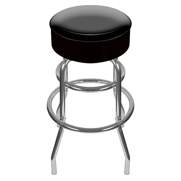 Trademark High grade padded swivel barstool in black color has metal frame for durability. 30″ Barstool features adjustable levelers for convenience.